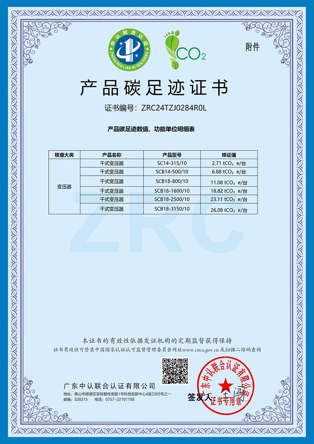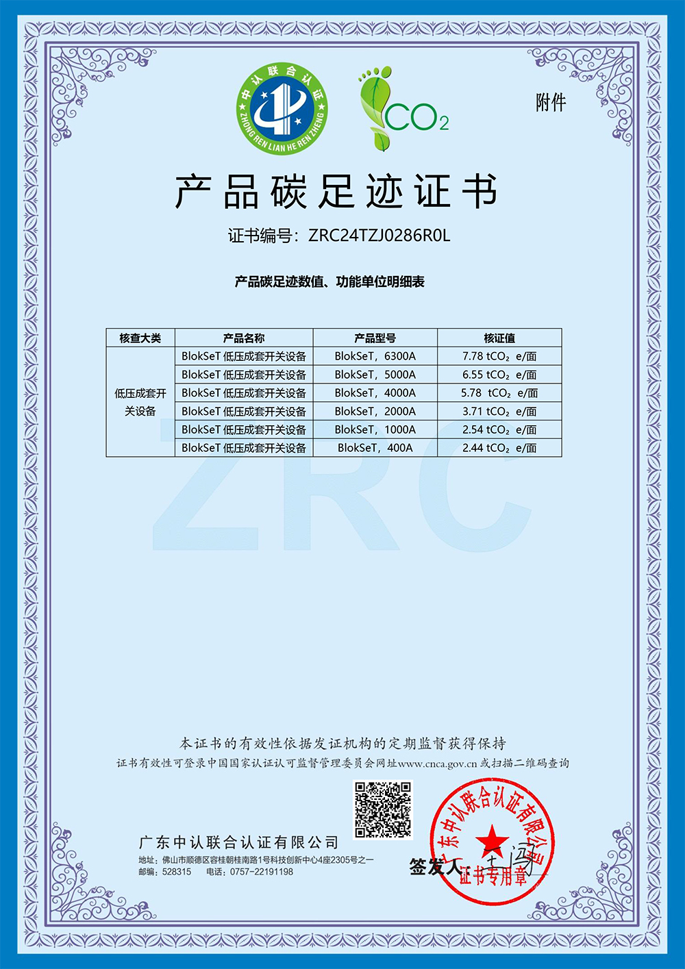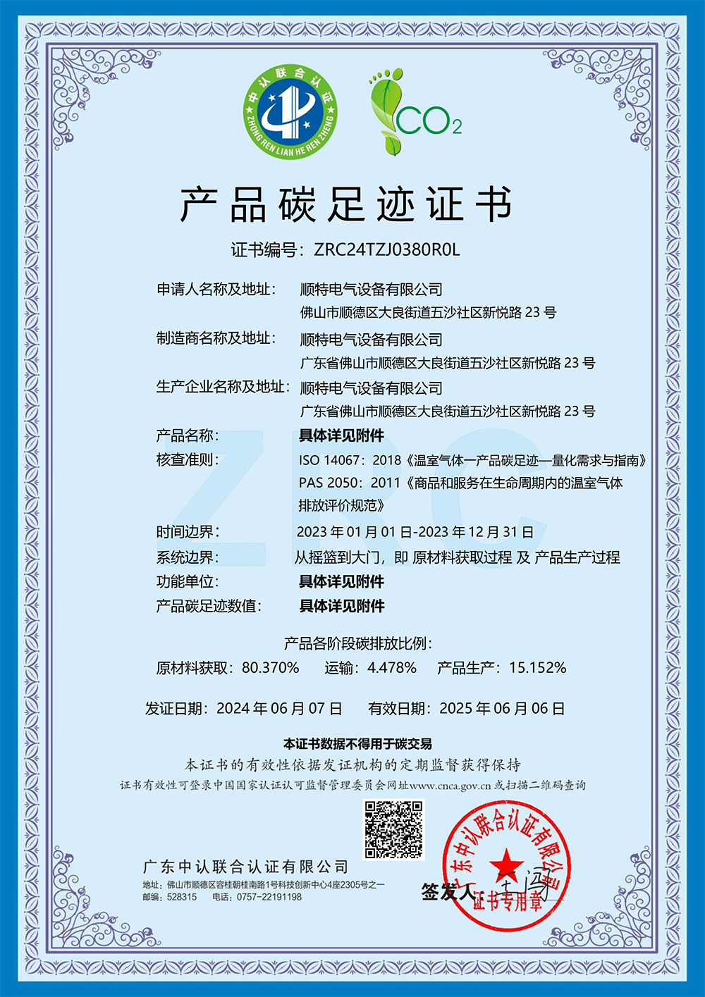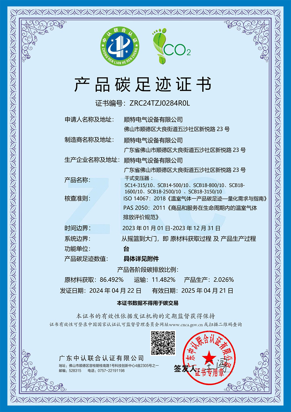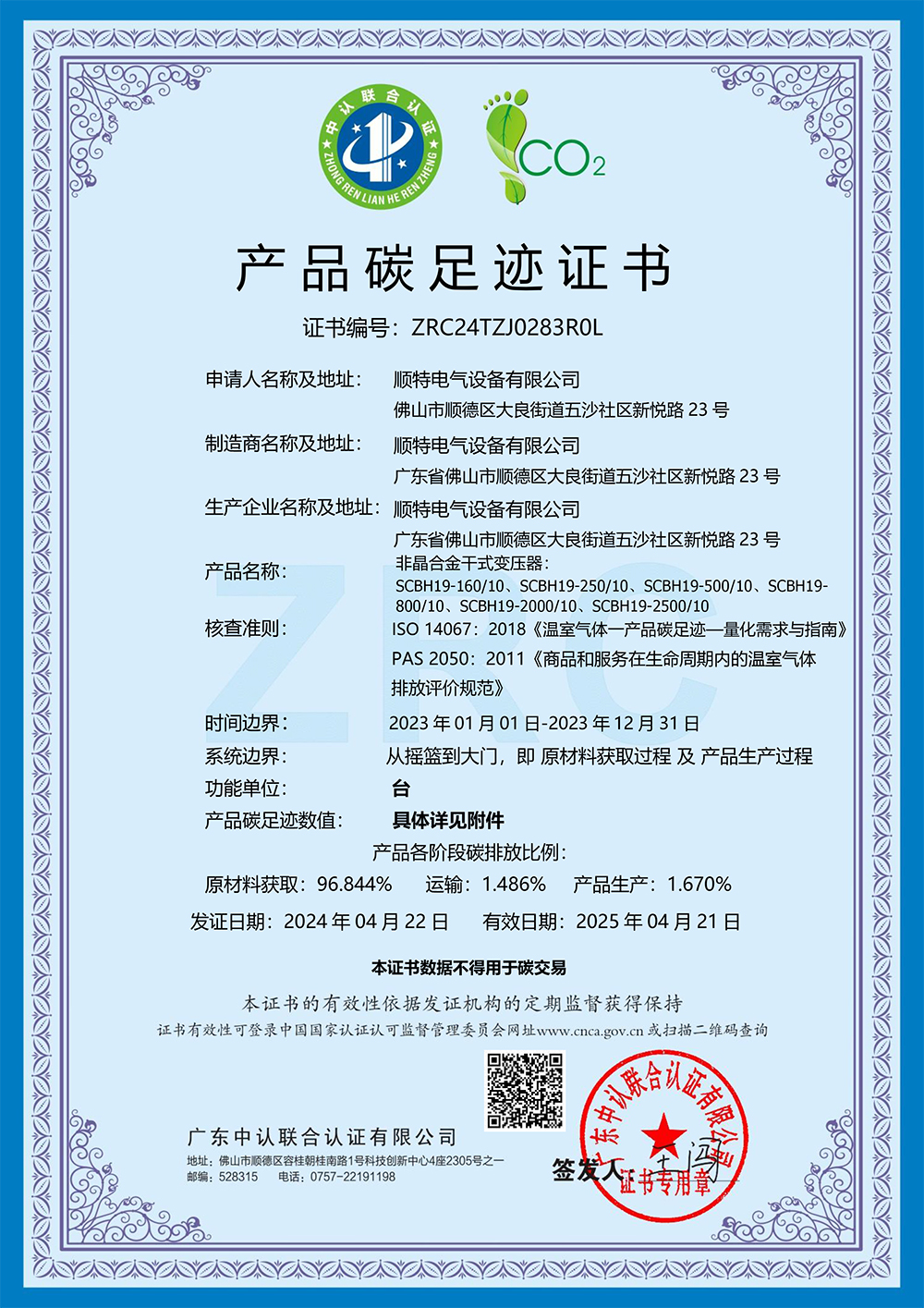 太阳集团官网有限公司取得产品碳足迹证书